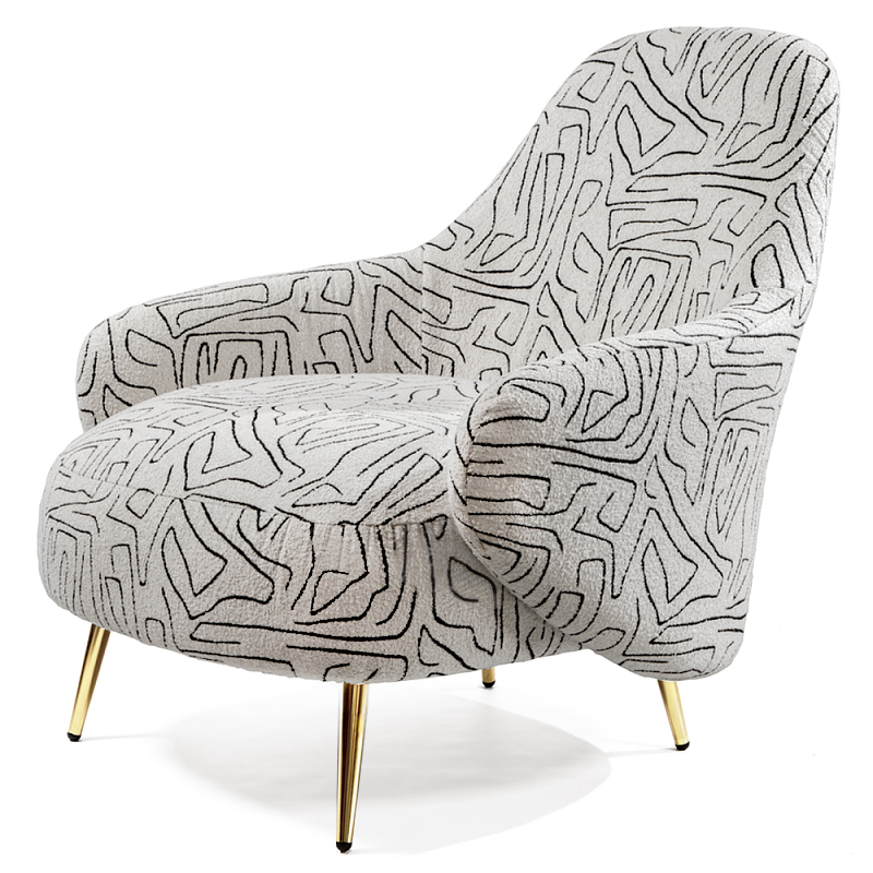 Кресло мягкое с принтом на золотистых ножках Onlooker Черно-белый Золотой в Рязани | Loft Concept