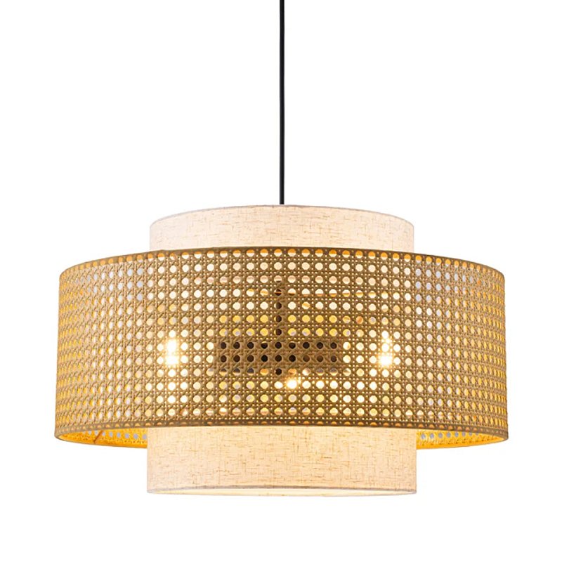 Подвесной светильник с декоративным поясом из плетеного бамбука Biuloggicu Бежевый Черный в Рязани | Loft Concept